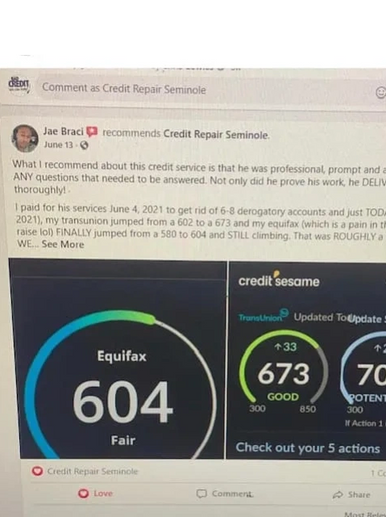 To see results as we obtain them visit us at www.facebook.com/seminolecreditrepair